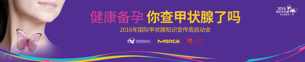 每年的5月25日所在的一周為國際甲狀腺知識宣傳周,今年的主題為“健康備孕·你查甲狀腺了嗎”。26日,“2016年第八屆國際甲狀腺知識宣傳周”啟動儀式在人民日報社新媒體大廈舉行。中華醫(yī)學(xué)會內(nèi)分泌學(xué)分會前任主任委員滕衛(wèi)平教授、中國疾控中心慢病中心副主任李志新、國家衛(wèi)生計生委宣傳司沈閏州、中華醫(yī)學(xué)會圍產(chǎn)醫(yī)學(xué)分會主任委員楊慧霞教授、人民網(wǎng)副總編輯孫海峰、默克公司代表等出席了本次活動。【詳細(xì)】