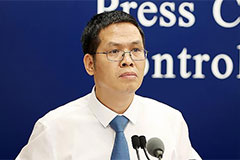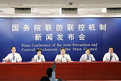 聯防聯控機制發布會現場 國家衛生健康委新聞發言人、宣傳司副司長胡強強主持發布會 國家衛生健康委疾控局監察專員王斌答記者問 海關總署衛生檢疫司副司長宋悅謙答記者問 中國疾控中心環境所所長施小明答記者問
