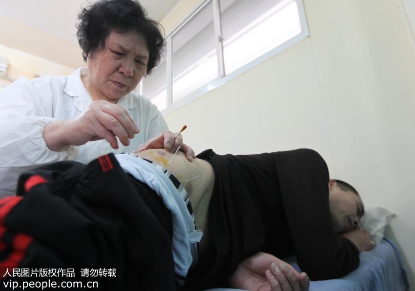 點擊下載本組圖片 一位患者在醫院扎針以緩解腰部疼痛。(詹逾/人民圖片) (聲明:凡帶有“人民【詳細】