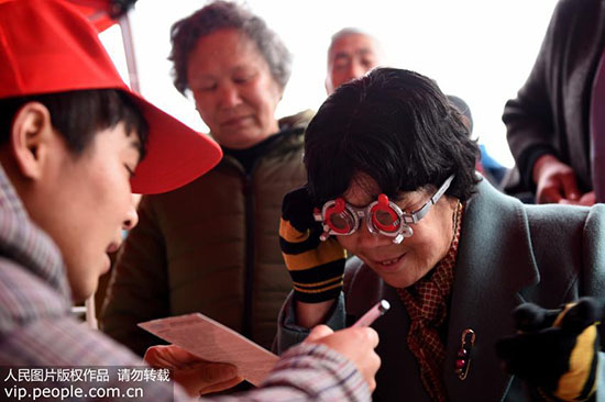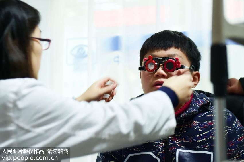 點(diǎn)擊下載本組圖片 浙醫(yī)二院眼科中心的醫(yī)生正在為一名少年試戴矯正鏡片。(李忠/人民圖片) (聲【詳細(xì)】