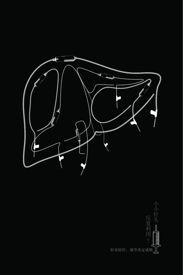 該作品以與病毒性肝炎相關(guān)的關(guān)鍵詞為主要內(nèi)容,以英文字母的形式排列,最終形成預(yù)防的圖案,黑白醒目,震懾【詳細(xì)】