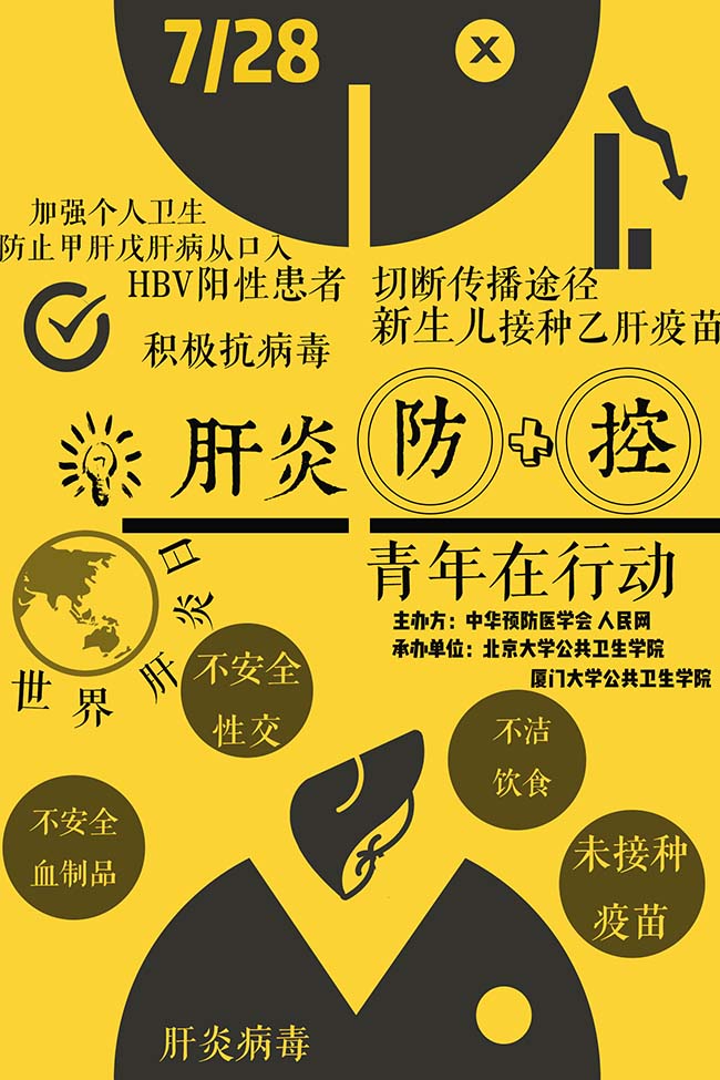 該作品采用了“貪吃豆豆”的形象,用以表達肝炎病毒正在吞噬肝臟的寓意。海報的主體劃分為上下兩個部分,下【詳細】