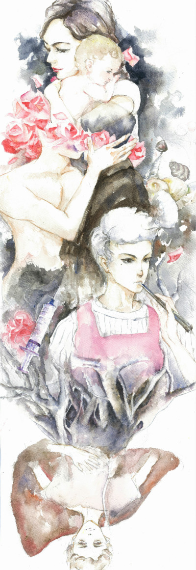 該作品展現了病毒性肝炎的三大傳播方式:母嬰、口腔等親密傳播;公用餐具、共用針管傳播;貝類食物傳播。(【詳細】