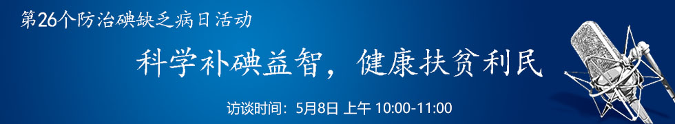 5月15日是第26個防治碘缺乏病宣傳日。為做好相關科學防控宣傳,引導公眾正確生活方式,組織一期以“科學補碘益智,健康扶貧利民”為主題的訪談活動,向網友介紹如何預防碘缺乏病等的健康科普相關知識。