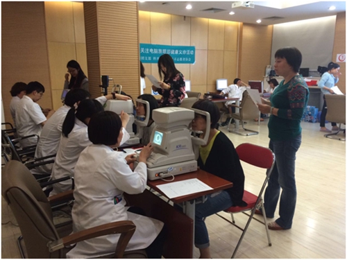 面積并不大的培訓教室在醫生們的布置下,各項檢查可以進行得井井有條。整個現場分為5個區域,涵蓋了眼科基礎檢查,客觀屈光,主觀屈光等幾個部分。參加檢查的人員只需按順序排隊,即可對眼部進行一次仔細的檢查,全部檢查下來,根據個人意愿,現場的專家還會綜合檢查結果給出建議。