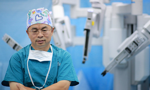 人民網北京6月9日電 “占據手術室里最顯眼位置的達芬奇手術機器人伸展機器臂進入患者腹腔,機械手臂攜帶著實時影像設備,將內部的情況清楚地傳輸到顯示器上。醫生在距離手術床大約3米遠的操作臺上進行手術。”這是胃腸道腫瘤專家、北京大學腫瘤醫院院長季加孚在北京和睦家醫院四號手術室里操縱達芬奇手術機器人,他正在為一位巨大胃部惡性間質瘤患者手術。