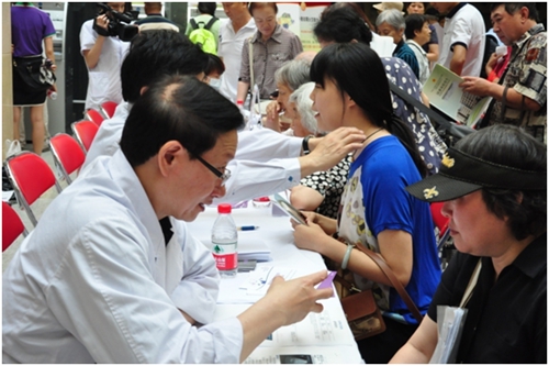 (義診現(xiàn)場(chǎng)專(zhuān)家為患者進(jìn)行解答、觸診 人民網(wǎng)李軼群拍攝)