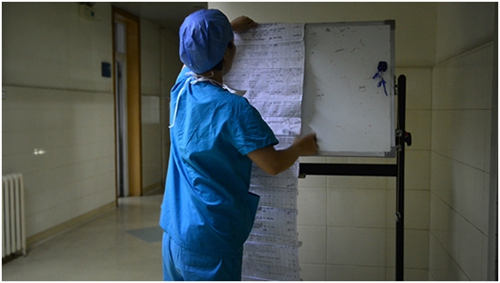 晚下班的不止甘承一個。“我們總共有15個手術間,現在還有好幾個正在做手術,估計最晚的得到十一二點。”護士長馬紅彤向我們展示了今天的手術單,一張張單子拼接在一起,“拉開看看,怎么也有三米。”