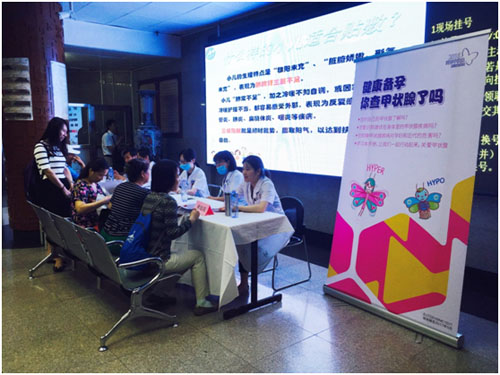 人民網北京6月6日電 (蔡熊更)2016年5月23日~29日為第八屆國際甲狀腺知識宣傳周(International Thyroid Awareness Week)。此次宣傳周主題是“健康備孕,你查甲狀腺了嗎”。為了提高公眾對甲狀腺疾病的關注度,做到科學預防、治療甲狀腺疾病,北京中醫藥大學東方醫院于6月3日上午在該院的門診大廳舉行了“國際甲狀腺知識宣傳周”義診咨詢活動。該院組織了內分泌科、核醫學科、外一科以及營養科專家共同為市民提供義診咨詢服務,免費為市民進行甲狀腺篩查以及對甲狀腺疾病相關健康問題進行了詳細解答,吸引了眾多市民參加。
