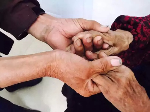 寧夏涇源的患者重獲光明后,緊緊拉住專家的手表示感謝