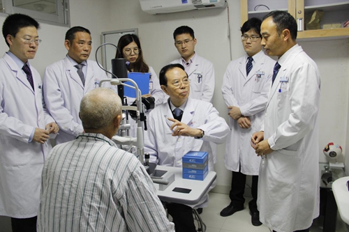 著名眼科專家謝立信院士與華廈眼科的醫生們交流患者情況