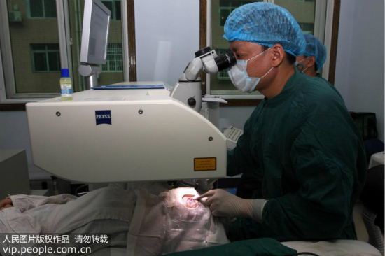 資料圖:2011年6月11日,一名近視眼患者在婁底市首家引進SBK近視手術方式的湖南省婁底眼科醫院進行手術。(郭國權/人民圖片)