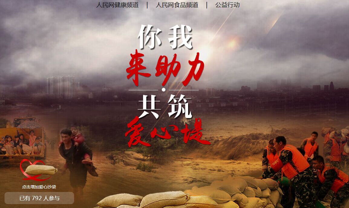 人民網北京7月20日電 6月底以來,全國多地遭遇汛情。各級黨組織、人民子弟兵、廣大黨員干部迅速行動、全力以赴,多個公益慈善組織、愛心企業捐款捐物,千萬社會志愿者積極參與,筑起了一道道“紅色防洪堤”“愛心防洪堤”。為集中弘揚、傳遞社會正能量,人民網健康特推出“你我來助力、共筑愛心堤”專題互動活動,期待您的參與與分享。