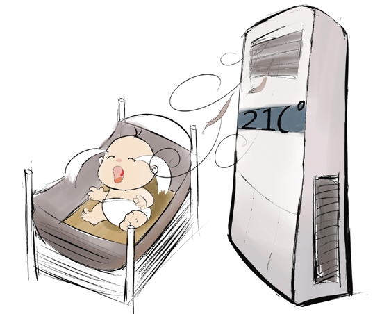 前天下午大約1點,一個媽媽急匆匆地抱著孩子來醫院,說是孩子嘴巴歪了。醫生一問情況,發現就是空調吹出來的毛病。午休前,媽媽和寶寶在客廳吃飯,當時沒開電扇,也沒開空調。想想寶寶要午睡,媽媽就提早在嬰兒房開了空調,為了讓溫度降下來,調到了21℃。誰知道,午睡一小時后,她就聽到嬰兒房傳來了寶寶的哭聲。