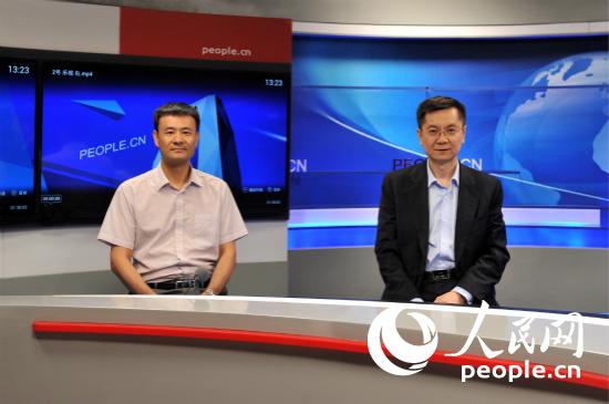 中國疾病預(yù)防控制中心免疫規(guī)劃中心副主任崔富強(qiáng)(左)、首都醫(yī)科大學(xué)附屬北京友誼醫(yī)院肝病中心主任賈繼東(右)做客人民網(wǎng)。(人民網(wǎng)記者韓淑賢 攝)