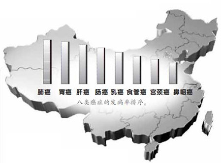 我國八大癌癥的發病率排序。(圖片來源:生命時報)