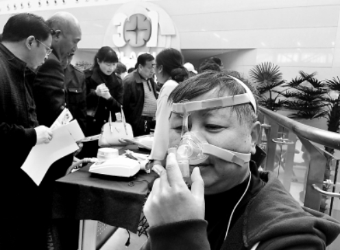 患者試戴治療鼾癥的家用無創(chuàng)呼吸機(jī)。(圖片來源:北京晚報)