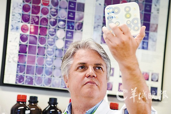 布魯塞爾大學醫學院Denis Pierard教授研究“超級細菌”標本。