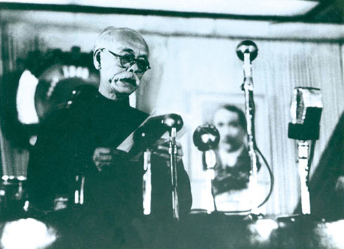 圖為1949年9月24日,農(nóng)工黨首席代表彭澤民代表農(nóng)工黨在全國政協(xié)一屆全體會(huì)議上發(fā)言