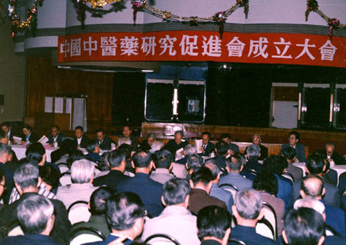 圖為1990年12月,中國中醫(yī)藥研究促進(jìn)會(huì)成立大會(huì)現(xiàn)場