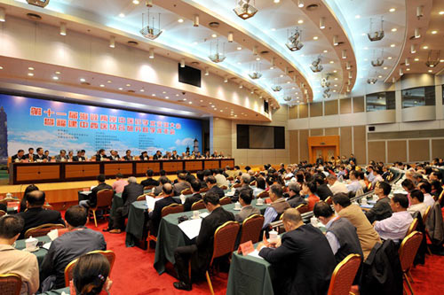 圖為2014年11月8日,第十一屆海峽兩岸中醫(yī)藥學(xué)術(shù)交流大會(huì)在福建省福州市開幕。400余位來自海峽兩岸中醫(yī)藥專家、學(xué)者及外國來賓歡聚一堂,共商弘揚(yáng)中醫(yī)藥文化大計(jì)。本次大會(huì)由中國中醫(yī)藥研究促進(jìn)會(huì)等共同主辦,臺(tái)灣中華中醫(yī)藥學(xué)會(huì)等8家單位協(xié)辦