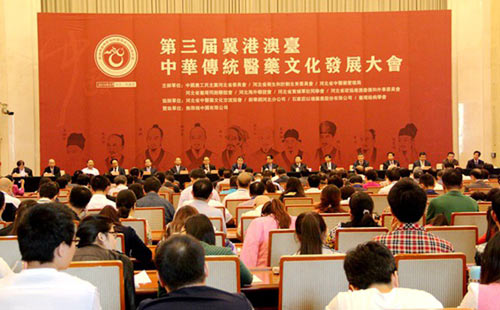 圖為2015年9月21日,農(nóng)工黨河北省委會(huì)等共同主辦第三屆冀港澳臺(tái)中華傳統(tǒng)醫(yī)藥文化發(fā)展大會(huì),為推動(dòng)中醫(yī)藥學(xué)術(shù)進(jìn)步、促進(jìn)四地中醫(yī)藥合作發(fā)展獻(xiàn)計(jì)獻(xiàn)策