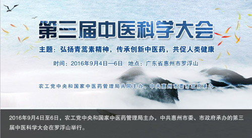 人民網北京8月25日電 2016年9月4日至6日,由中國農工民主黨中央委員會和國家中醫藥管理局共同主辦,中共惠州市委、惠州市人民政府承辦的第三屆中醫科學大會將在廣東省惠州市羅浮山召開,全國人大常委會副委員長、農工黨中央主席陳竺,全國政協副主席、農工黨中央常務副主席劉曉峰,國家衛生計生委副主任、國家中醫藥管理局局長王國強,農工黨中央副主席龔建明將出席大會。屆時,人民網健康(http://health.people.cn/)將對大會實況進行全程報道。