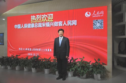 為深入學習習近平總書記講話精神,人民日報社人民網(wǎng)以“我眼中的健康中國”為題開展系列訪談,分別邀請國家部委相關領導、醫(yī)療機構(gòu)負責人、專家學者和企業(yè)領導等做客人民網(wǎng),暢談發(fā)展、建言獻策,積極支持衛(wèi)生健康事業(yè)。近日,中國人民健康保險股份有限公司黨委書記、總裁宋福興做客人民網(wǎng),與網(wǎng)友交流了他眼中的健康中國。