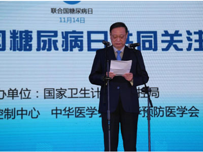 國家衛生計生委王國強副主任在活動中致辭,指出糖尿病是嚴重威脅我國居民健康的四大類慢性病之一,也是多種疾病的獨立危險因素,我國糖尿病患者人數眾多,防治形勢嚴峻。強調科普宣傳是促進廣大人民群眾不得病、少得病的關鍵手段,要通過科普宣傳,強調“每個人是自己健康第一責任人”的理念,強化個人健康意識,積極促進群眾形成健康的行為和生活方式,推動人人參與、人人盡力、人人享有,降低和消除影響健康的危險因素,有效控制糖尿病的發生。
