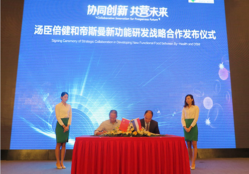 湯臣倍健和帝斯曼新功能研發戰略合作發布儀式現場