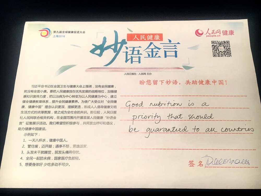 芬蘭社會事務與衛生部長波克·馬蒂拉參與人民健康妙語金言征集活動