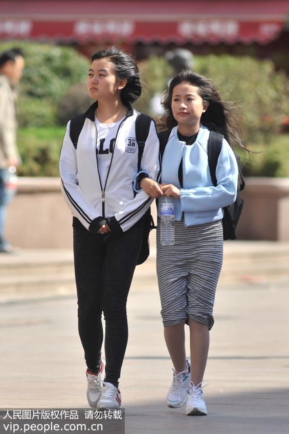 人們身著秋裝出行,現時裝版美麗“凍”人畫面。(王海濱/人民圖片)