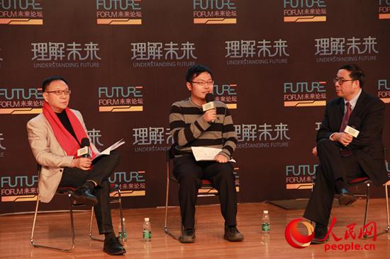魯白正在向兩位對話嘉賓提出問題(姬志壘 攝)