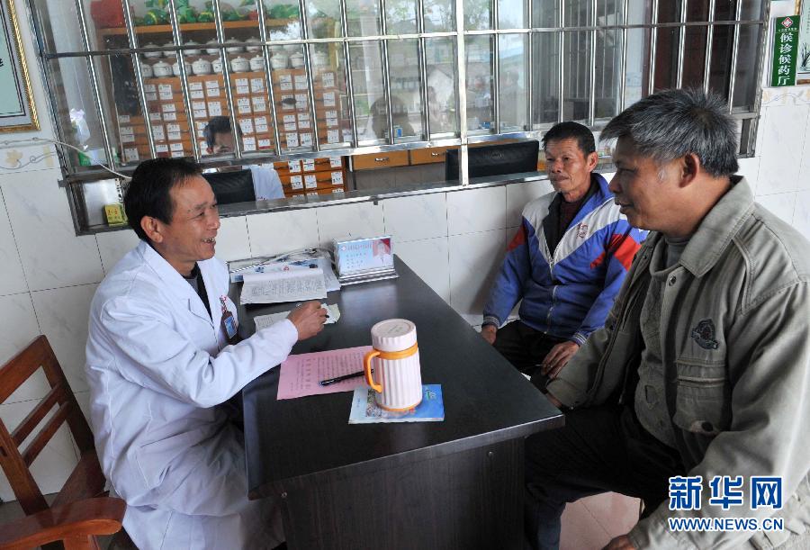 廣西梧州岑溪市大業鎮古萬村村民在村衛生所看病。(圖片來源:周華/新華社)