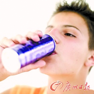 一男孩在喝功能飲料(圖片來(lái)源:廣州日?qǐng)?bào))