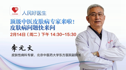 2月14日(周二)14:30-15:30,由人民日報社人民網(wǎng)、健康時報聯(lián)手打造的“人民好醫(yī)生”客戶端將邀請北京中醫(yī)藥大學東方醫(yī)院副院長李元文教授進行視頻、圖文直播,在線解答關(guān)于美容養(yǎng)顏、改善皮膚狀態(tài),治療皮膚疾病的相關(guān)問題,期待您的參與。