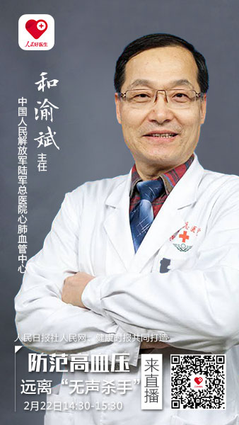 2月22日(周三)14:30-15:30,由人民日報社人民網、健康時報聯手打造的“人民好醫生”客戶端將邀請陸軍總醫院心肺血管中心和渝斌主任進行視頻、圖文直播,在線解答關于高血壓等心血管疾病的相關問題,期待您的參與。