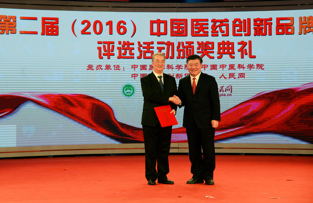 十二屆全國人大常委會副委員長、農(nóng)工黨中央主席陳竺為中國工程院院士、十一屆全國人大常委會副委員長、國家重大新藥創(chuàng)制科技重大專項技術總師桑國衛(wèi)頒獎 劉倩/攝