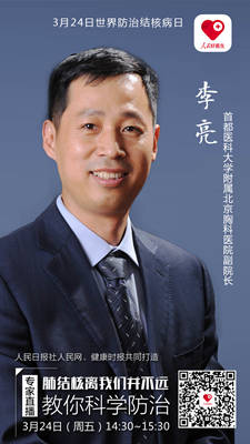 24日14:30,首都醫科大學附屬北京胸科醫院副院長李亮教您防治肺結核