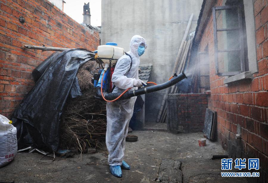 安徽省天長市對H7N9禽流感患者住所附近進行徹底消毒。(杜宇/新華社)