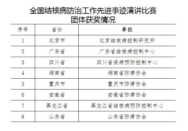 參加決賽的18名選手繪聲繪色地向我們講述一個個用自己的血肉之軀筑起隔絕“疫情”傳播鐵壁銅墻的平凡結核病防治工作者的故事。經過13位評委的專業評審,四川省廣元市劍閣縣疾控中心熊涎妗、廣東省結核病控制中心舒楊、重慶市沙壩區衛生和計劃生育委員會范海昕榮獲本次全國結核病防治工作先進事跡演講比賽一等獎,湖南省株洲市中心醫院張曦予等6位選手獲得二等獎,重慶市綦江區衛生和計劃生育委員會岳鑫等9位選手獲得三等獎。北京結核病控制研究所、廣東省結核病控制中心、四川省疾病預防控制中心、湖南省防癆協會、重慶市防癆協會、安徽省防癆協會、黑龍江省結核病預防控制中心和山東省防癆協會獲得優秀組織獎。