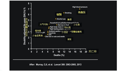 2010年,對世界上152個國家和地區(qū)的全球疾病負擔(dān)調(diào)查中發(fā)現(xiàn):高血壓是導(dǎo)致死亡和殘疾的最重要的原因,其次是吸煙。