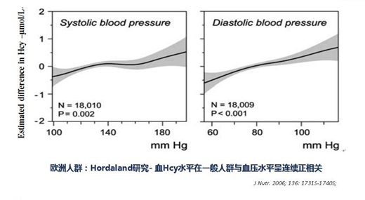 高血壓與血Hcy水平升高不僅在導(dǎo)致腦卒中發(fā)生具有協(xié)同作用,事實上,Hcy本身就是血壓升高的獨立危險因素。多項不同類型的回顧性研究表明,血同型半胱氨酸水平升高可能通過多種途徑促進高血壓的發(fā)生和發(fā)展,且血同型半胱氨酸水平與血壓水平呈連續(xù)線性正相關(guān)。
