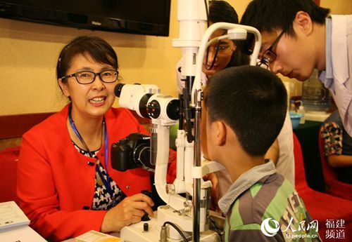 國家級青少年近視防控專家石一寧教授為一9歲的患者檢查視力。
