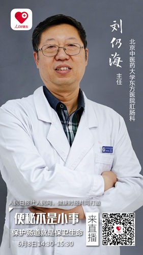 為了提高大家對肛腸疾病危害的認識,6月8日(周四)14:30,由人民日報社人民網、健康時報聯手打造的“人民好醫生”客戶端將邀請北京中醫藥大學東方醫院肛腸科主任劉仍海,進行視頻、圖文直播,并在線解答大家的問題,快來提問。