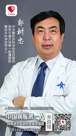 7月19日(周三)下午2:30,由人民日報社人民網、健康時報聯手打造的“人民好醫生”客戶端將邀請西安交通大學第一附屬醫院整形外科學科帶頭人郭樹忠教授,進行視頻、圖文直播,并在線解答廣大網友的提問!