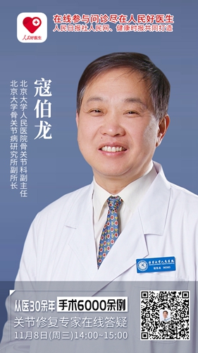 11月8日下午14:00-15:00,北京大學(xué)人民醫(yī)院骨關(guān)節(jié)科副主任,北京大學(xué)骨關(guān)節(jié)病研究所副所長寇伯龍將做客由人民日報(bào)社人民網(wǎng)、健康時(shí)報(bào)聯(lián)手打造的“人民好醫(yī)生”客戶端進(jìn)行視頻、圖文直播,解答您的各種關(guān)節(jié)問題,趕緊來提問吧!