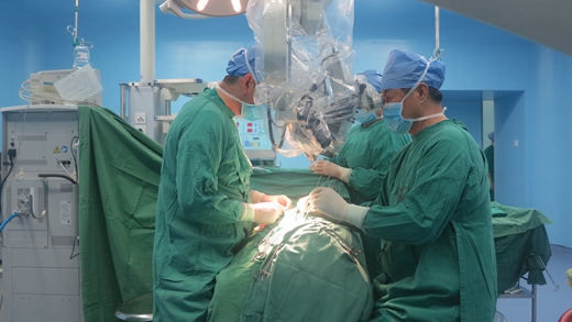 2016年6月8日在新疆醫科大學第二附屬醫院手術室,欒新平教授正在為腦癱患兒做手術。攝影:劉陽