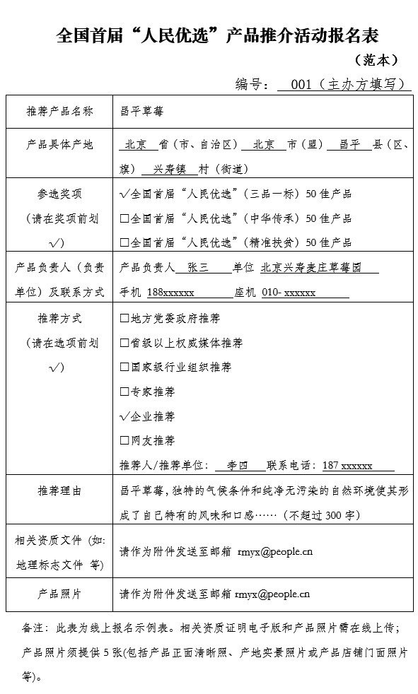 附件(一):點擊下載全國首屆“人民優選”產品推介活動空白報名表