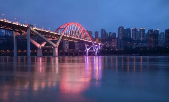 【重慶】重慶菜園壩長江大橋 中國第二大跨度拱橋,它的建成曾創下三項世界第一,是目前國內最大的公共交通和城市輕軌兩用大跨徑拱橋。26日晚它亮起旗幟性的紅色,創下的記錄是為人類不再承受結核病的痛苦而發出的強勁聲音。(圖片來源:中國疾控中心結核病預防控制中心)